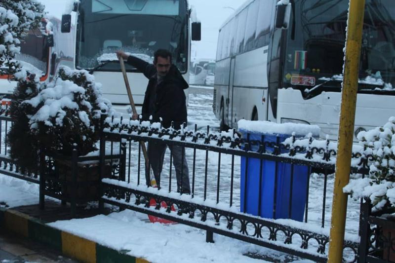 عملیات برفروبی در پایانههای مسافربری قزوین اجرا شد