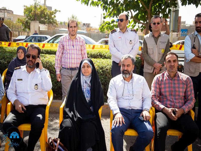حضور رئیس و اعضای شورای اسلامی شهر ، جمعی از مدیران شهری و شهروندان در مجتمع صدرا واقع در میدان مادر،به مناسبت روز آتش نشانی و ایمنی