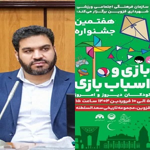 رئیس کمیسیون فرهنگی، اجتماعی و ورزشی شورای اسلامی شهر قزوین از برگزاری هفتمین جشنواره بازی و اسباب بازی در سرای سعد السلطنه قزوین خبر داد.