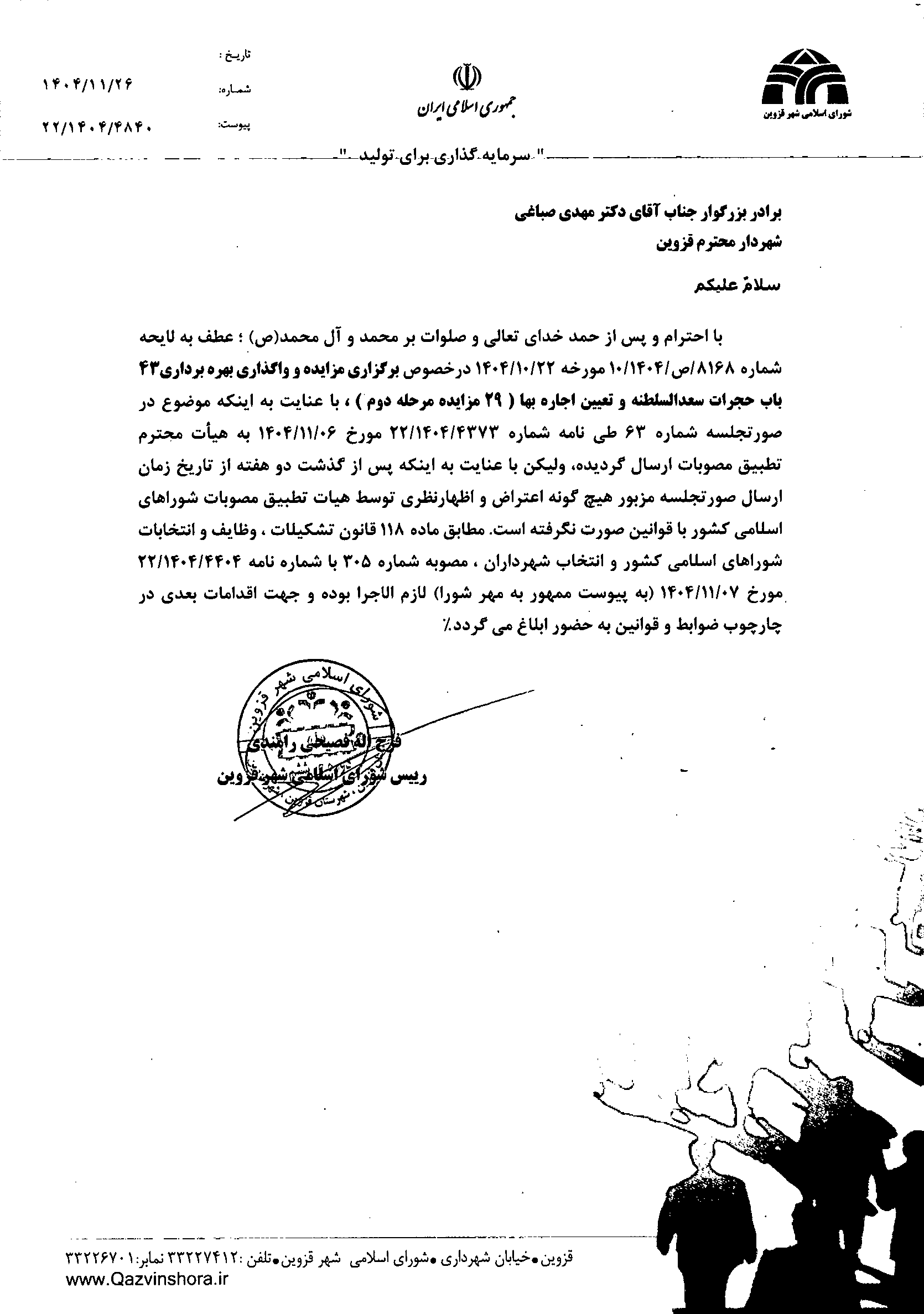 آدرس : قزوين_ خيابان شهرداري_شهرداري مركز_ساختمان شوراي اسلامي شهر قزوين